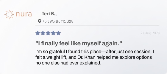 Nura Therapy is trusted by people across Fort Worth, Arlington, and nearby communities.